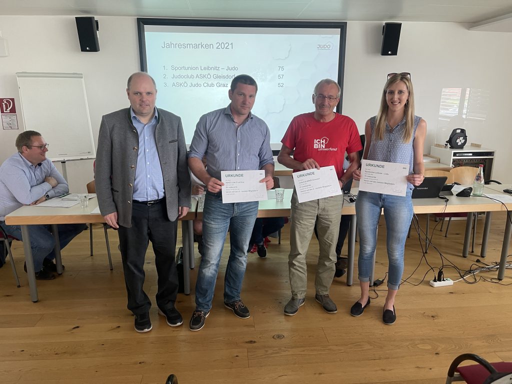 Im Block Ehrungen werden schon traditionell die mitgliederstärksten Vereine gekürt. Das Ranking für die bezogenen Judocards im Jahre 2021 führte Sportunion Leibnitz vor Askö Gleisdorf und Askö Graz an.
